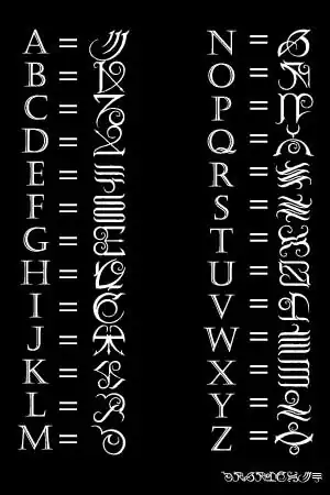 Dentro do encarte, os nomes das faixas aparecem com símbolos. Uma das forma de decifrar o que está escrito é relacionar os símbolos com as letras do alfabeto. Os símbolos mais populares ficaram conhecidos como "APC Text", "Myan", ou "Elegant Myan2, e são bastante vistos em tatuagens, fontes de computador e trabalhos artísticos. Abaixo está a tradução deles: