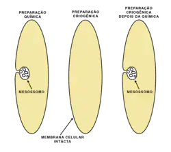 George Chapman e James Hillier descrevem a estrutura como formando-se "em células bacterianas preparadas por fixação química para microscopia eletrônica, mas não por crio-fixação. Mesossomas são invaginações na membrana plasmática de bactérias que são produzidos pelas técnicas de fixação química usadas para preparar amostras para microscopia eletrónica."[1]