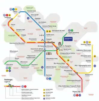 - ↑ «Metropolitan Sofia – General Scheme». Cópia arquivada em 16 de Julho de 2017