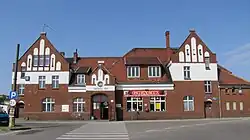 - Prédio da estação ferroviária neogótica de tijolos de 1904 na atual rua Dworcowa