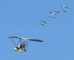 A migração guiada por humanos é um método de reestabelecimento de rotas migratórias de aves criadas por seres humanos para sua reintrodução na natureza.[1][2]