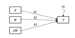 Neste caso, o papel de x2 como variável moderadora é realizado pela avaliação de b3, a estimativa do parâmetro para o termo de interação. [1] Veja regressão linear para uma discussão de avaliação estatística de estimativas de parâmetros em análises de regressão.