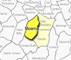 Moema é um distrito situado na Zona Sul do município de São Paulo. Antes chamado de Indianópolis, experimentou um grande crescimento imobiliário na década de 1970 e, ainda hoje, continua a atrair investimentos,[1] sendo considerado uma região nobre da cidade. Moema lidera o ranking do índice de desenvolvimento humano no município (0,961),[2] segundo dados do ano 2000, e tem a segunda maior renda média mensal domiciliar da cidade, na frente da Vila Mariana e sendo superada apenas pelo Morumbi.[3]