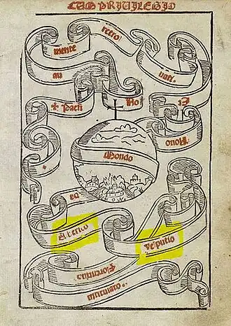 o nome "Alberico" é usado em vez de "Américo", para identificar o navegador Vespúcio. O mesmo acontece em diversas edições (1508, 1512, 1519), e noutros livros, onde o primeiro nome é novamente mudado para "Albertutio".[1]
