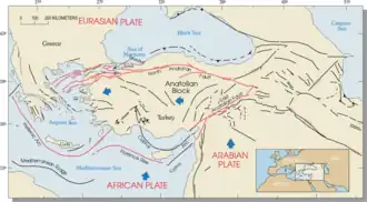 - Bozkurt, E. (2001). «Neotectonics of Turkey – a synthesis». Geodinamica Acta. 14 (1–3): 3–30. doi:10.1080/09853111.2001.11432432