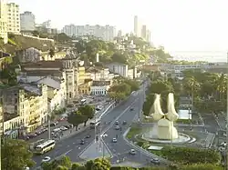 ![]() A reconstruída Fonte da Rampa do Mercado (Monumento à Cidade do Salvador) em 2024, após a sua destruição por um incêndio em 2019. | |