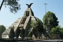 A glorieta de Avenida dos Insurgentes Norte e o águia do cúpula do congresso mexicano hoje Monumento à Revolução. | |