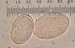 Os esporos são elípticos e lisos, medindo 25-37 por 15-23 μm. Os ascos (células portadoras de esporos) têm oito esporos, são cilíndricos e medem 225-300 por 7,5-32,5 μm. As paráfises são cilíndricas, septadas e medem de 100 a 200 por 7,5 a 20 μm. Suas pontas têm formatos variados, desde arredondados até em forma de taco e em forma de fusível. O conteúdo das paráfises é hialino (translúcido) a levemente amarronzado em hidróxido de potássio diluído (KOH). As hifas nas cristas da píleo estéril são septadas e medem 75-175 por 10-20 μm. As células terminais têm formato variável (semelhante ao das paráfises) e apresentam conteúdo hialino a marrom em KOH.[2]