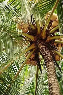 Os coqueiros (Cocos nucifera) crescem até uma altura de 30 metros, com folhas pinadas de 4 a 6 metros de comprimento, e pinas com 60-90 cm de comprimento.[5] Uma árvore pode gerar até 75 frutos por ano, mas é mais comum gerar menos de 30.[6] Um coco pode pesar até 1,44 kg.[7] Coqueiros são cultivados em mais de 80 países do mundo, com uma produção total de 61 toneladas de cocos por ano.[8]