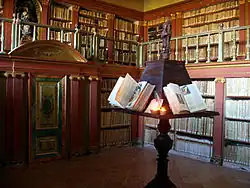 Tem o mosteiro também uma importante biblioteca de livros de canto do século XVII. Uns 30 livros gigantes pesam entre 40 e 60 kg, feitos à mão ao longo de quatro anos de trabalho e nos quais foi utilizada, para pergaminho, a pele de cerca de 2.000 vacas.