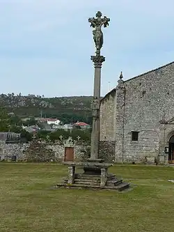 Frente à fachada, na explanada encontra-se um cruzeiro, obra do natural de Quireza Francisco Ferreiro em 1893, no qual se representa a figura do Redentor, uma Verônica e no reverso a Imaculada Concepção sustentada por anjos.