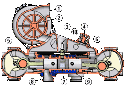 - ↑ «Motor de pistões opostos». Encyclopædia Britannica Online (em inglês). Consultado em 24 de novembro de 2019