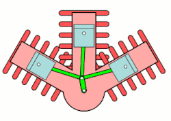 - Três bancos de cilindros compartilhando um mesmo virabrequim, também conhecida como broad arrow.[1][2]