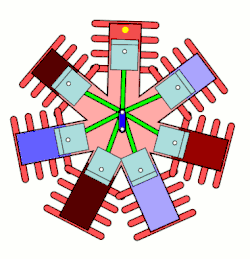 Esta configuração é semelhante ao motor radial, diferindo pelo fato que no motor radial os cilindros e as demais peças do motor permanecem fixas e a árvore de manivelas gira. Estes motores foram usados principalmente em aviões, no período que antecedeu a Primeira Guerra Mundial.[1]
