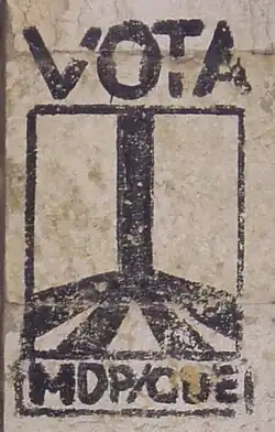 Em 1993 alterou a sua sigla de MDP/CDE para apenas MDP, refletindo o nome oficial do partido.