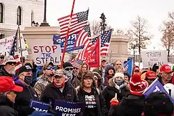 - ↑ Eisler, Peter; Parker, Ned; Layne, Nathan; Tanfani, Joseph (2 de dezembro de 2024). «After Trump's win, his election denial movement marches on» [Após vitória de Trump, seu movimento de negação eleitoral continua a marchar]. Reuters. Consultado em 3 de dezembro de 2025