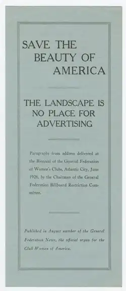 Os clubes femininos desempenharam um papel significativo na proteção dos recursos naturais e na conservação ambiental. Muitos clubes iniciaram suas atividades com o objetivo de embelezar suas cidades e estados. Eles patrocinavam e mantinham playgrounds e cemitérios, e, mais tarde, expandiram seus esforços para projetos de reflorestamento. Por exemplo, um clube feminino de Michigan trabalhou para reflorestar partes do estado, enquanto em Idaho, clubes de mulheres ajudaram a impedir a extração de madeira em florestas nacionais.[133][134][135][136] Desde 1890, o GFWC tem se envolvido em questões relacionadas à silvicultura e conservacionismo, operando um comitê dedicado à silvicultura. Esse comitê divulgava informações sobre conservação para os 800.000 membros da organização. Em 1915, o GFWC patrocinou uma pesquisa das áreas naturais cênicas dos Estados Unidos para identificar regiões que precisavam de proteção. À medida que áreas ambientalmente frágeis começaram a ser desenvolvidas, muitas mulheres se opuseram a essas iniciativas. Elas atuaram tanto nos clubes existentes quanto na criação de novos clubes voltados para a conservação, com o objetivo de proteger e preservar o meio ambiente.[137][126][138][139]