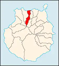 | Oeste: Santa María de Guía de Gran Canaria | Moya | Leste: Firgas |