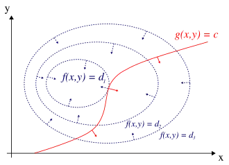 Em matemática, em problemas de otimização, o método dos multiplicadores de Lagrange permite encontrar extremos (máximos e mínimos) de uma função de uma ou mais variáveis suscetíveis a uma ou mais restrições.[2]