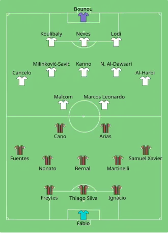- ↑ a b «Tactical Line-up: Fluminense FC v. Al Hilal» (PDF). FIFA.com. Fédération Internationale de Football Association. 4 de julho de 2025. Consultado em 4 de julho de 2025