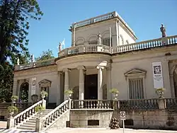 O projeto era de um edifício de um só andar, com parapeito de balaústres adornado com estátuas, galerias com arcadas laterais e um terraço frontal espaçoso com parapeito também de balaústres, adornado com grandes vasos de plantas, que é acessado através de uma escadaria frontal ao pórtico central da entrada, sustentado por quatro colunas jônicas. O classicismo e a simetria da construção são retomados pela resolução do jardim da frente, cujo acesso é feito de tal maneira que ao percorrer o caminho que acompanha o grande canteiro circular central, somos forçados a mudar a nossa perspectiva à medida que se aproxima do acesso ao edifício, introduzindo assim um elemento tempo na composição.