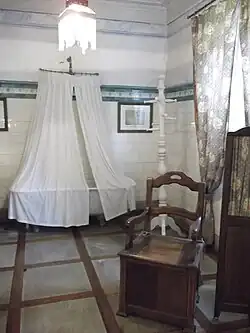A casa de banho está localizada ao fundo da residência, é uma torre com escada lateral e base cilíndrica. Possui três pavimentos, o térreo onde ficava uma cisterna e que atualmente está fechada, no pavimento superior à este está a banheira com fundo de mármore, azulejos europeus[4] e no último pavimento, era o reservatório de água que está desativado.[2][3]