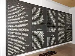 Mural com placas comemorativas de várias visitas do museu, junto à entrada. -