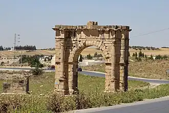 A origem do arco situado à entrada das ruínas é desconhecida. O arco oriental, que se encontrava em avançado estado de ruína, foi restaurado em 1967 pelo Serviço de Monumentos Históricos do Instituto Nacional de de Arte e de Arqueologia. O mausoléu dos Júlios, situado junto ao arco, foi também reconstruído nessa época.[nt 2]