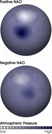Oscilação do Atlântico Norte, também frequentemente referida por North Atlantic Oscillation ou pelo acrónimo NAO, é a designação utilizada em climatologia, meteorologia e oceanografia física para descrever um fenómeno meteorológico, recorrente no Atlântico Norte, caracterizado por flutuações na diferença ajustada de pressão atmosférica ao nível do mar entre a depressão da Islândia e o anticiclone dos Açores. Através das flutuações na intensidade da depressão da Islândia e do anticiclone dos Açores, este mecanismo controla a força e a direcção dos ventos de oeste sobre o Atlântico Norte e a trajectória das áreas de baixa pressão associadas às tempestades que atravessam o oceano de oeste para leste.[1] A Oscilação do Atlântico Norte faz parte da Oscilação do Ártico e varia com o tempo, sem periodicidade particular conhecida.