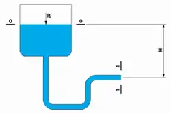 onde é a perda de carga entre 0 e 1, é a pressão na superfície da água, é a pressão de vapor (pressão de saturação) para o fluido a temperatura , é a diferença na altura (mostrado como H no diagrama) da superfície da água na localização 1, é a densidade do fluido, assumida constante, e é a aceleração gravitacional.