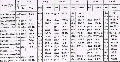 - ↑ a b c Christina Helena Barboza. «História da Meteorologia no Brasil (1887-1917)» (PDF). Consultado em 21 de fevereiro de 2011
