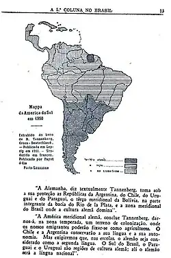 Segundo escritos do diplomata Sérgio Corrêa da Costa, o nazismo alemão planejou desmembrar o Sul do Brasil e nele construir uma nova Alemanha.[47] O projeto não seria novo, porém, já existindo anteriormente. No seu "Gross Deutschland, die Arbeit des 20. Jahrhunderts ("A Grande Alemanha, obra do século XX), publicado em Leipzig, 1911, Tannenberg estabelece o princípio da repartição das Américas Central e do Sul entre as grandes potências imperialistas, reservando para a Alemanha a zona subtropical banhada pelo Atlântico: