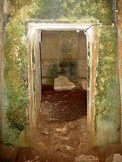 As câmaras funerárias são acessíveis por dromoi (corredores) que descem desde o nível do solo até à entrada do túmulo usando uma rampa e, em alguns casos, também degraus.[1] As paredes dos dromoi foram talhadas de forma a ficarem mais próximas umas das outras em cima do que em baixa. As entradas estavam, na maior parte dos casos, originalmente cobertas por uma grande pedra, a qual usualmente ainda se pode ver perto da entrada. Um par dos túmulos maiores têm um pilar no centro da câmara e, pelo menos num dos túmulos, junto às paredes foram talhados bancos de pedra quando o túmulo estava a ser construído escavando a rocha. Os túmulos foram escavados na rocha macia da região, conhecida localmente como kouskouras. Todos estão orientados para nordeste, em direção ao monte Vryssinas, onde em tempos existiu um santuário importante.[2]