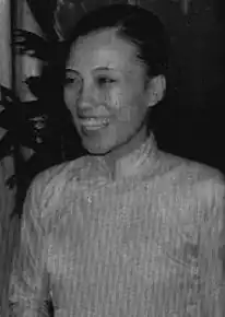 Durante a Guerra do Vietnã, ela se tornou um membro do Comitê Central do Vietcong e um vice-presidente da Associação de Libertação feminina do Vietnã do Sul. Em 1969 ela foi nomeada ministra das Relações Exteriores da República do Vietname do Sul e desempenhou um papel importante nos Acordos de Paz de Paris sobre o Vietname, um acordo para acabar com a guerra e restaurar a paz no Vietnã, que foi assinado em Paris e que entrou em vigor 17 de janeiro de 1973. Ela foi uma das pessoas que assinaram os Acordos de Paz de Paris.