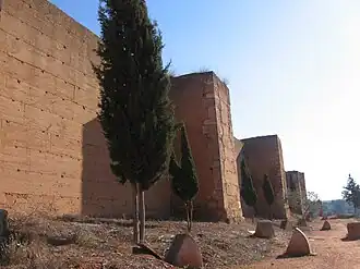 - Muralhas tartéssicas, romanas e árabes de taipa, com as portas de Sevilha, Socorro, Buey e Agua