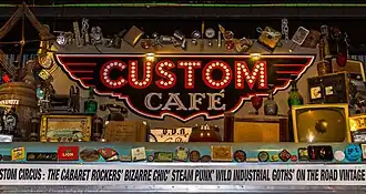 O Diner surgiu da ideia dos Custom Circus em criar um palco boémio dentro de um espaço vintage com restauração, música ao vivo e outras formas de apresentação de arte e cultura. Inicialmente a intenção do grupo era a de utilizar um veículo como peça central, e foi ponderada a ideia de se usar uma roulotte Airstream; contudo, no seu lugar, optaram por integrar no espaço um antigo eléctrico que se encontrava em avançado estado de degradação. Em 2013, graças a um acordo com a Câmara Municipal de Oeiras, esse eléctrico da revolução industrial passou a fazer parte do Diner.[36][37]