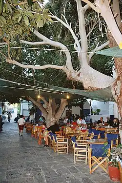 As fontes de água quente da ilha, conhecidas desde a Antiguidade, continuam ativas hoje em dia perto de Lutra, a 1,5 km de Mandraki. Pali, uma pitoresca aldeia de pescadores, fica a leste de Lutra. As culturas mais importantes da ilha são a oliveira, a figueira, a videira e diversas as árvores de fruto.
