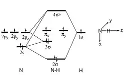 O tripleto é o estado fundamental para o composto HN e para a maioria dos nitrenos, porém podem ser gerados também singletos.[5] Os 4 elétrons pareados dos singletos resultam em sistema com spin igual a S = ½ + (-½) + ½ + (-½) = 0, sendo a multiplicidade mS = 2S + 1 = 1. Já no caso dos tripletos, há 2 elétrons pareados e 2 paralelos, gerando spin S = ½ + (-½) + ½ + ½ = 1 e multiplicidade mS = 2S + 1 = 3.[7] A hibridação dos orbitais do nitreno aproxima-se de sp, sendo que um par de elétrons ocupa o orbital sp enquanto que os outros ocupam os outros dois orbitais p (Figura 1).