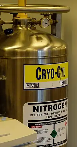 - ↑ British Compressed Gases Association (2000) BCGA Code of Practice CP30. The Safe Use of Liquid nitrogen dewars up to 50 litres. ISSN 0260-4809.[1]