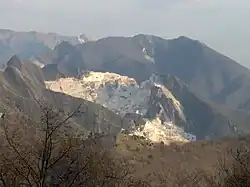 - ↑ Adnkronos (17 de dezembro de 2020). «Carrara: il marmo che divora le Apuane, via 4 mln di tonn di montagna l'anno». Adnkronos. Consultado em 8 de agosto de 2022