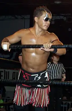 - ↑ Foi uma luta numa jaula de aço, envolvendo também Kzy, Ryo "Jimmy" Saito, Shingo Takagi e Yamato.
