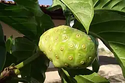 ![]() Folhas e frutos da Morinda citrifolia | |||||||||||||||