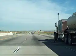 - Espaço livre vertical: Distância vertical mínima sob estruturas suspensas, como pontes, é de 4,9 m (16 pés), incluindo os acostamentos pavimentados e uma margem para camadas extras de pavimento. Em áreas urbanas, pelo menos um trajeto deve ter uma folga de 4.9 m (16 pés), mas outros podem ter uma folga menor de 4.3 m (14 pés). Os suportes de sinalização e os viadutos para pedestres devem estar pelo menos 5,2 m (17 pés) acima da pista, exceto em rotas urbanas com menos espaço livre, onde devem estar pelo menos 30 cm (1 pé) mais altos que outros objetos. O contraventamento transversal das pontes de treliça tem um requisito especial de folga adicional de 5.3 m (17,5 pés).