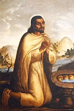 - ↑ Sousa, Lisa; Poole, Stafford; Lockhart, James (1998). The Story of Guadalupe: Luis Laso de la Vega's Huei tlamahuiçoltica of 1649 (em inglês). 84. Califórnia: Stanford University Press, UCLA, Latin American Center Publications. p. 65. ISBN 0-8047-3482-8. OCLC 39455844