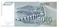 5,000 dinara | 151 x 72 | Azul escuro | Relevo de Ivan Meštrović no edifício do Parlamento Federal | Edifício do Parlamento Federal | |||