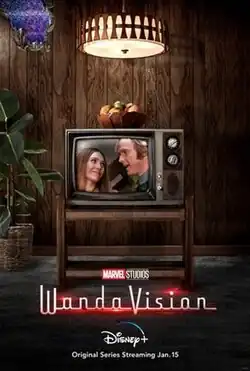 ![]() Pôster promocional para WandaVision, destacando o cenário dos anos 1970 | |||