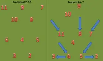 As primeiras evoluções das formações envolveram a movimentação de posições específicas; por exemplo, movendo a metade central para trás para se tornar um defensor em vez de meio para trás. Seus números foram deslocados com eles, portanto, os defensores centrais usavam o número 5, e remanescentes do sistema permanecem até hoje.