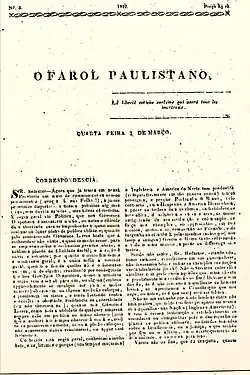 - ↑ a b c OLIVEIRA, Carlos Eduardo França (2010). Informação e política nos primórdios da imprensa paulista: O Farol Paulistano (1827-1831). [S.l.: s.n.]
