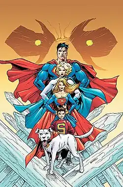 ![]() Superman, Poderosa, Supergirl e Chris Kent em Superman #670, a conclusão da trama | |