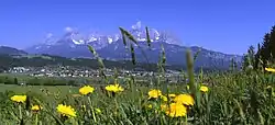 Situa-se no vale de Leukental, junto ao rio Kitzbühler Ache, a meio caminho entre Kitzbühel e St. Johann in Tirol.